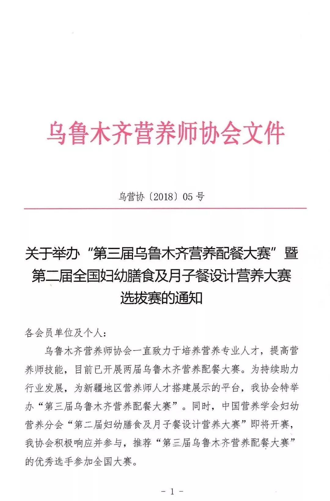 乌鲁木齐营养师协会一直致力于培养营养专业人才,提高营养师技能,目前已开展两届乌鲁木齐营养配餐大赛。为持续助力行业发展,为新疆地区营养师人才搭建展示的平台,我协会特举办“第三届乌鲁木齐营养配餐大赛”。同时,中国营养学会妇幼营养分会“第二届妇幼膳食及月子餐设计营养大赛”即将开始,我协会积极响应并参与,将“第三届乌鲁木齐营养配餐大赛”优秀选手,推荐参加全国大赛。